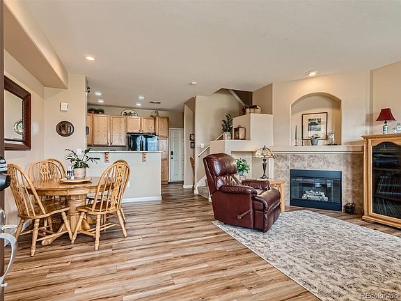 - Description: Vinyl Plank Floor, Corner Gas Fireplace W/Tile Surround, Art Niche, Large Windows W/Blinds, Recessed Lighting, Open To Kitchen And Dining Area, Neutral Tones