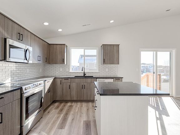 This new home located in beautiful Kuna, Idaho has all the comforts you need & more! Dreams do come true in the Harrison 2025! Get the single-level home you always wanted without sacrificing any living space. The outside world will melt away while you relax in the bright & sunny living room at the rear of the home. The kitchen comes with stainless steel appliances and stylish solid surface countertops, adding both functionality and aesthetics to the kitchen. Discover an oasis of solitude in the primary suite with its enviable walk-in closet, dual vanities, and two refreshing windows. The concrete patio entices you to spend time outside so you will not miss even a moment of nice weather. Love where you live in the Harrison. Photos are of the actual home!