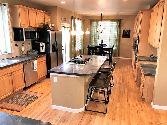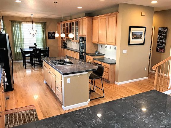 Cul-de-sac location near trails, parks, highways, golf courses, Red Rocks, shopping, schools. Mountain view! Great floorplan - split staircase and high ceilings in entry, great room, living room. Wood floors in kitchen, dining room, entries. Huge kitchen - long island, double oven, gas cooktop, tons of cabinet room, eating space. Wonderful great room - built-in speakers, gas fireplace. Bright cozy living room. Formal dining room. Bright master bedroom; Adjacent 5-piece master bath oval tub, shower with bench seat, beautiful tile work, large walk-in closet. 2 other big bedrooms - mountain views, big closets - served by Jack & Jill full bathroom. Huge loft space overlooking great room. Full unfinished basement. Big 3-car tandem garage with high ceilings great for adding equipment storage. Not-to-miss features: south facing, near-new impact resistant roof, security system, utility sink in laundry room, powder room with pedestal sink.
