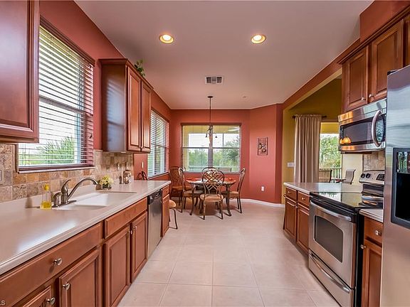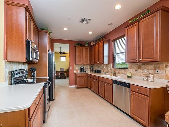 C.15509 - This elegantly, designer turn-key fully furnished, condominium home represents the carefree and enviable Florida Lifestyle in the desirable Lucaya Community of South Ft Myers. Offered with Owner financing or rent with the option to buy. Your beautiful home with large screened lanai will be the envy of your guests. The grand entry stairway winds up and flows into the living room and then stretches to the water/preserve views from this peaceful corner...Oh, what a feeling. This home boasts a high-quality kitchen with hardwood cabinets, solid surface counters, breakfast area and breakfast bar as well. The master and guest bedrooms are over-sized and split in a quiet tranquil setting. The living room/dining room area are designed perfectly for sun and fun indoors and out. This move-in ready, 2,387 sq ft A/C home with a total of 2,860 sq ft includes 3 bedrooms, den, 2 baths, 1 car garage; all appointed in luxury. Astonishing, alluring, and in a beautiful setting. This home has quality construction, very low real estate taxes, low cost per square foot, low association fees all making this home qualified for a "Best Value Buy."