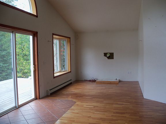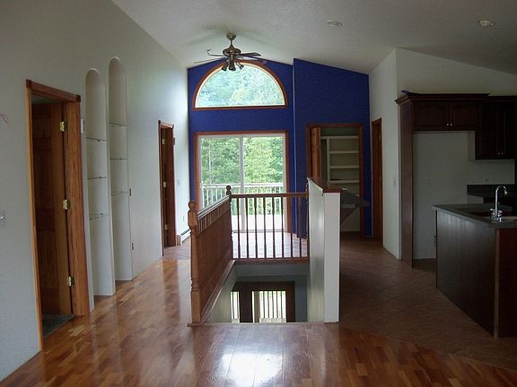 Spacious home situated on 1.17 acres. Garage is 32X29 plus an office, 3/4 bath and rear entrance area in the back with a stairwell to upper level. The upstairs features an open floor plan with living room, dining area, kitchen, 2 bedrooms and full bath. Upper deck off the living room in the front plus an upper and lower deck at the back of the house. Central vaccum.