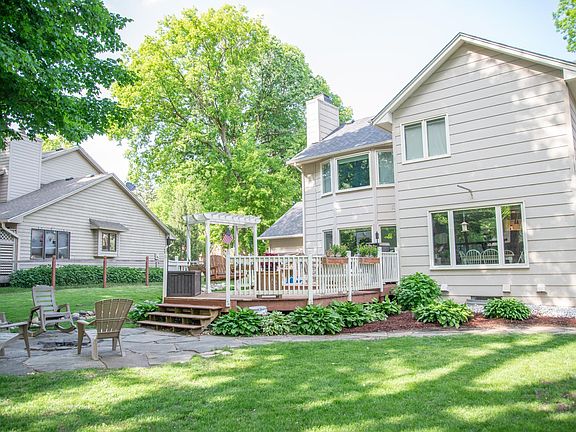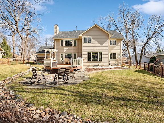 Enter this 3,000-plus square foot two-story home onto gorgeous Brazilian cherry hardwood floors throughout the main level living, dining, eat-in kitchen and family room. Open kitchen, informal dining and family room with granite countertops, custom built-in cabinets and fireplace. Just off the three-car garage is a mudroom with built-in shelving and tile floor. Four bedrooms on upper level feature a spacious primary ensuite with walk-in closet, dual sinks, separate tub and shower. Lower-level amusement room has newer carpet and elevated floor for theatre seating. Three-quarter bath on lower level was remodeled in 2022. Newer Wellington windows and paint throughout. Roof replaced in 2019, with gutters and downspouts. Large deck leads to a fun fenced yard that includes paver walkway, a playset, and a meandering dry creek bed. HSA Home Warranty included.