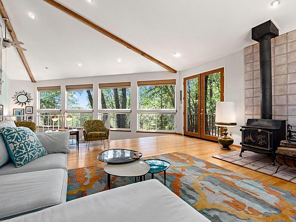 Stunning views reveal themselves as you make your way up the driveway of this private, beautiful and well cared for ten acres in the highly desirable Cement Hill neighborhood. Perfect for nature enthusiasts complete with your own hiking trails yet just a short drive into the charming and vibrant downtown of Nevada City. Spacious and architecturally interesting home in 2500+ sq. feet with 4 bedrooms and 2 baths and a wonderful floor plan that takes advantage of the home's special setting with big views throughout. The open living room/dining room and spacious loft lend itself to a house with terrific flow that lives so comfortably. The views, sunrise to sunset, continue in the master bedroom with vaulted ceilings with a generous master bath suite with a tub from which to listen to all the lovely bird calls from your front yard. Lush landscaped front yard is fully fenced and provides ample, various lounging areas, room for playing and raised garden beds. Detached garage and RV parking.