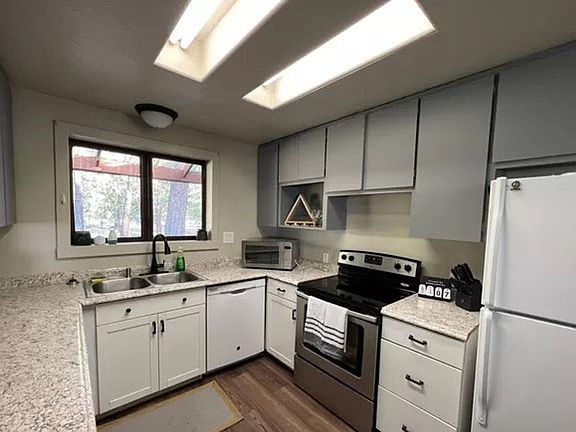 Spacious ranch style log home on almost an acre. 3-bedroom, 2 bathrooms, 1887sqft. Updated laminate floors and carpet throughout, updated hall bathroom, master bath updates, fresh paint, updated lighting and door hardware, stainless appliances. Two oversized living spaces for plenty of entertainment or multigenerational living. Kitchen has updated lower cabinets and hardware, new sink and faucet, and newer appliances. Pets considered with an additional deposit, monthly fee, breed and size restrictions do apply. Fully fenced yard. Tenant responsible to carry renters' insurance during entire length of tenancy. Appliances Stainless steel glass top stove. Microwave Washer/dryer hookups. Utilities Garbage, electric and Internet are tenants' responsibility. Pets allowed Rent $2500 Deposit $3000 Application fee $60 per adult over the age of 18