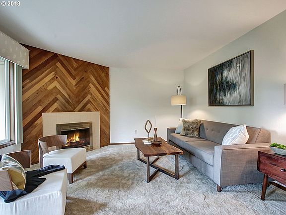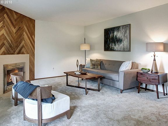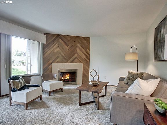 One-level ground floor 2 bed/2bath condo at the back of the development, located directly across from Nike & close to Tualatin Hills parks & rec, Tanasborne, Cedar Hills, Hwy 26/217, & a 10 min drive to Intel. Spacious living room with wood-burning fireplace, formal dining room, large kitchen & in-unit laundry. New carpet/interior paint throughout. Covered patio off the living room overlooks green space. Two assigned parking spaces.