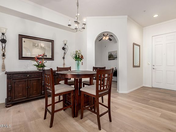 NEW FLOORING AND JUST PAINTED in 2025! This 2-bedroom condo with office/den has been unlived in, offering a like-new interior with vaulted ceilings, arched details, and plenty of natural light. The kitchen features staggered cabinetry with crown molding, recessed lighting, and a breakfast bar peninsula. The primary suite includes a dual-sink vanity and walk-in closet, while the den works perfectly as an office or flex space. ALL FURNITURE CAN CONVEY ON SEPERATE BILL OF SALE, making this a turnkey home. Enjoy the balcony looking over pool plus community amenities including theatre room, spa, and fitness center. The den works perfectly as a home office or flex area. Enjoy your morning coffee on the balcony and spend peaceful evenings. Don't forget to visit the community's pool, spa, workout center, and other amenities! Buyer can receive all existing furniture if desired, and convey outside of escrow at no value. What are you waiting for? This gem won't last!