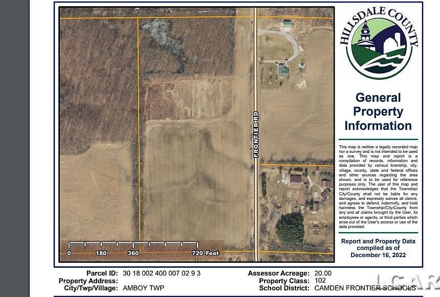 PRIME southern Hillsdale County land for sale here! Beautiful building site and with 5 acres of woods, you have a great hunting place. There are plenty of Michigan bucks living in this area. The 15 acres of farm ground gives you a great location for your house and outbuildings and land left to farm or grow horse hay. There are 2 small buildings for storage. Lot sizes are approximate. This information has been secured from sources we believe to be reliable, but we make no representations or warranties, expressed or implied, as to the accuracy of the information. Buyer and Buyer's agent must verify the information and bear all risk for inaccuracies.