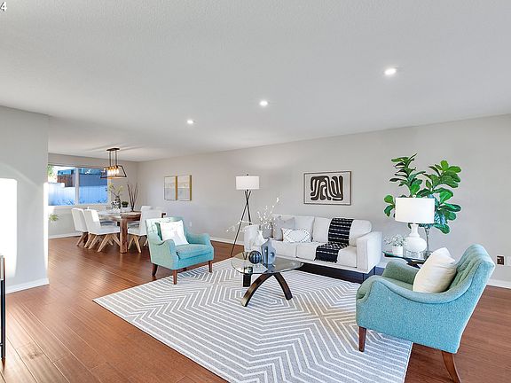 Terrific Tigard location, this updated, full four bedroom home with bonus room sits on a culdesac with a nice sized backyard. The bay windows in front spill light through the open living and dining room during the day and sunsets in the evening. Inside new flooring has been installed throughout the home, fresh interior paint, new doors and hardware, appliances, lighting and updated bathrooms & toilets. The primary has a walk-in closet and a custom made accent wall and the 4th bedroom which is staged as an office comes with a custom murphy bed, great for visiting guests. Outside the generous backyard has a new trex deck with cable railing, play structure, firepit, utility shed and a garden area with a variety of berry bushes. Excellently located near well-rated Tigard schools, Bridgeport Village, Cook park, shopping & convenient access to 1-5 & 217 freeways. Open House Sat & Sun 1:00-3:00pm