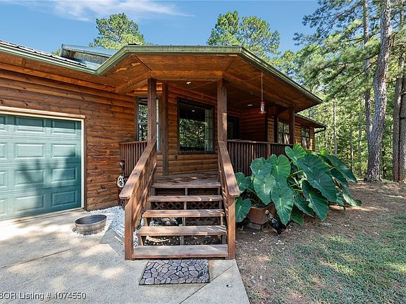 Nestled on a picturesque 6.09-acre lot, this charming two-bedroom, two-bathroom log cabin offers the perfect blend of rustic elegance and comfort. Surrounded by nature's beauty, the home features an inviting floor plan with a spacious living area, cozy fireplace, and large windows that flood the space with natural light. The well-appointed kitchen boasts updated appliances and ample counter space, ideal for preparing meals and entertaining. The yard features mature trees providing plenty of shade.