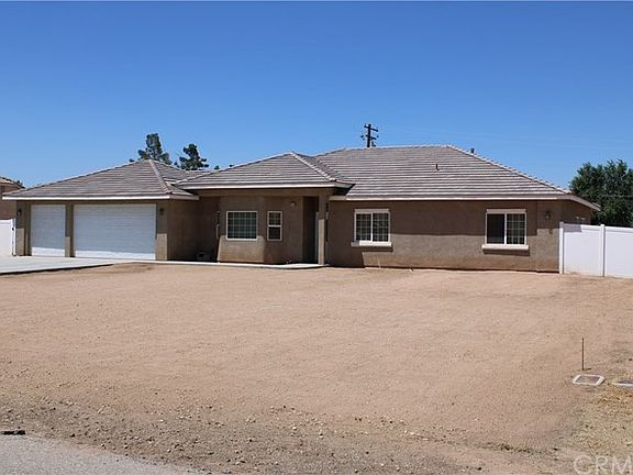GOT SOLAR? Say goodbye to your electric bill. This breathtaking solar powered home is situated in beautiful Apple Valley. Located close enough to all the towns amenities and yet just far enough away. If you are looking for peace and quiet, this is the home for you. When arriving to this house you will notice a long concrete driveway with direct access to your three-car garage and double gates for RV style parking. When Entering this gracious three-bedroom two-bathroom home you will enjoy new interior paint and flooring, high ceilings and open floor plan. Formal living room, large center island kitchen with breakfast counter and walk in pantry open to the dining area and large family room with fireplace. French doors lead to a large back yard complete with vinyl fencing and offers plenty of space for toys, pets, pools or just plain relaxing. Make this one a must see....