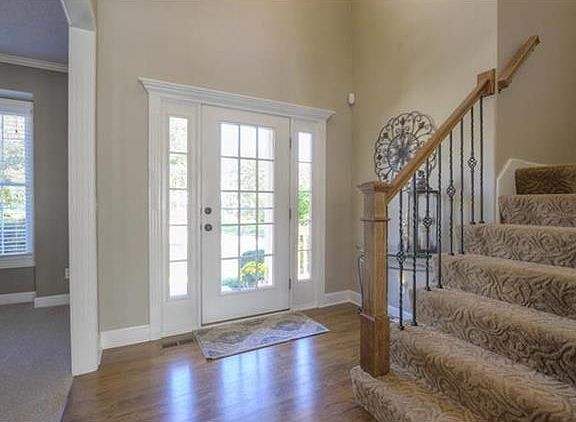 GORGEOUS PARKHILL MANOR 2-Story on a friendly cul-de-sac lot! OPEN FLOOR PLAN w/HUGE kitchen island & GRANITE, SS appliances, pantry, refinished hardwoods, newer carpet, iron spindles, updated fixtures! Masterful Master w/walk-in closet, private tiled bath-NEW GRANITE countertops! Finished basement w/media, office, bar & workout area! Private Fenced Backyard & deck. Hop on trail to Blackbob Park or Heritage Park...Or hang out at the NEIGHBORHOOD PARK or Neighborhood Pool! Award winning Olathe Schools! Welcome Home!
