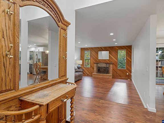 Welcome to this charming home & newly remodeled kitchen (2022) featuring stunning white cabinets, accent tiles, stainless steel appliances, ample storage & modern lightning. Enjoying the newer laminate flooring throughout and a cozy sunken living room with a cedar accent wall framing the fireplace. The primary suite offers a private ensuite bath. Outside, relax on the newer covered deck & take advantage of the large shed and RV parking w/a concrete pad. Move-in ready & full of character!