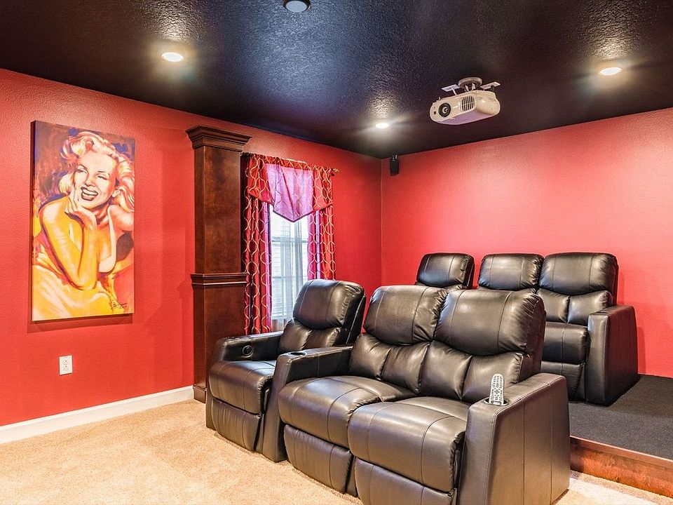 Welcome to this exquisite 8-bedroom, 6-bathroom vacation home located in the prestigious ChampionsGate Resort. This private pool and spa home is perfect for families looking to explore the best of Central Florida. With a west-facing pool, game room, and theater room, this home offers a delightful retreat. The first floor features two master suites with king-size beds and attached bathrooms, while the second floor includes Mickey and Minnie Mouse themed rooms and additional bedrooms with twin, queen, and king-size beds. The home boasts a fully equipped kitchen with seating for 10 at the dining table and 5 at the breakfast counter, making it ideal for family meals. Enjoy the game room with a pool table, foosball, and air hockey, or relax in the theater room. A pack 'n play and high chair are available for your convenience. Optional pool and spa heating is available for an additional $30 per day plus tax. The resort allows a maximum of 5 cars or 3 large passenger vans, with additional parking for visitors. Additional rental items such as BBQs, cribs, and strollers are available. Situated in a gated community, this home is just 10 miles from Disney World and offers easy access to other attractions like Universal Studios and SeaWorld. The Oasis Clubhouse is a short walk or drive away, featuring a resort-style pool, lazy river, fitness center, and more. Nearby shopping and dining options are just a few miles away. The property is smoke-free and pet-free for your comfort. Complimentary Wi-Fi is provided, and towels and linens are included. Check-in is seamless with online email access, and 24/7 maintenance support is available. Pools are serviced weekly, and guests are responsible for replenishing any starter supplies provided.