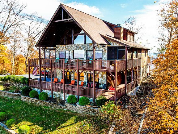 A Home with a Million Dollar View! Nestled atop a ridge, this 3-bed, 3-bath masterpiece offers 360-degree panoramic views that are truly priceless. Every room in this home boasts large paned windows, providing miles of breathtaking views of ridge tops, pastured valleys, and glimpses of the stunning Hiawassee Lake. The heart of this home is the oversized great room, where you can enjoy the picturesque landscape from the comfort of your couch. The spacious kitchen is equipped with a gas range and custom cabinets, perfect for the home chef. Each bedroom is generously sized and offers porch access, allowing you to step out and soak in the beauty of the surroundings. The home also features a flex room that can be used as an office or a fourth sleeping area. The home is easily accessible via a paved road and is just 12 miles from downtown Murphy. The property is surrounded by mature and manicured landscaping, adding to its charm and appeal. Outdoor living is a breeze with the wrap-around decks and large outdoor living areas. Watch the birds soar over the valley and ridges or entertain guests with ease in this open floor plan home. The home also features two large living areas and a finished basement, providing ample space for relaxation and entertainment. This storybook cabin is more than just a home; it's a retreat that offers pea tranquility, and a connection with nature. Experience the magic of this place and make it your home today!
