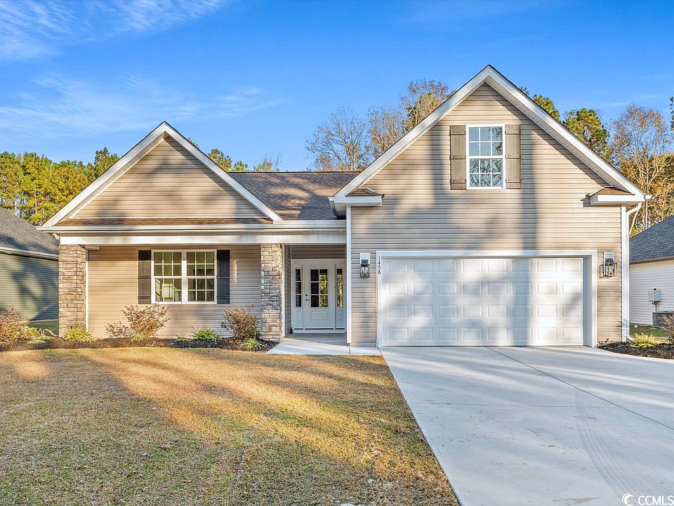Enjoy this 4-bedroom, 3-bathroom home on .60 acres with no HOA. Step inside this impressive foyer and enter the living space with a floor to ceiling fireplace. The kitchen is equipped with sleek stainless steel appliances (range, dishwasher, microwave), granite countertops, and a convenient work island. The owner's suite boasts a delightful tray ceiling and an en suite bathroom complete with a spacious walk-in closet. For added convenience, the upstairs features a fourth bedroom with its own full bathroom and closet, offering privacy and comfort for guests or family members. Don't miss the opportunity to make this home your own! Just a short drive to the beach, shopping, golfing, dinning and downtown Conway.