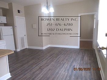 1458 DAUPHIN ST. #204-UP 1/1 $685 ALL ELECTRIC! Modern conveniences in a magnificent Old Dauphinway Mansion. This apartment features NEW laminate flooring throughout, WALK-IN closet, central heating and air, separate kitchen with stove and refrigerator, all electric, and high ceilings. Occupant is responsible for electric and water utilities. Only residents may parking in the parking lot. From Bowen Realty, Inc.'s parking lot go left on Dauphin St., go past Catherine St. and the eleven unit Mansion will be on left. Lease is 1 year then month to month. No smoking, no section 8.