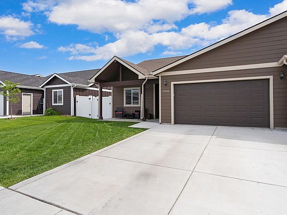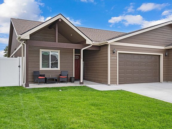This exquisite townhome is located in Kalispell's charming Southside Estates, nestled in the shadow of Lone Pine State Park. This prime location offers convenient access to the Hwy 93 Bypass. Step inside this beautifully-designed townhome to experience single-level living with a spacious open floor plan. The interior boasts vaulted ceilings, 3 bedrooms, and 2 bathrooms, including a luxurious primary suite with a step-in shower. The modern kitchen, equipped with stainless steel appliances, is perfect for all your culinary endeavors. Premium interior appointments include hardwood floors and quartz countertops throughout and accented shiplap walls. The exterior of the home is equally impressive, featuring a welcoming porch, relaxing expanded patio and vinyl privacy fencing. An attached heated garage with built-in shelving and paved driveway provide ample parking and convenience. Plus, you'll enjoy breathtaking mountain views right from your home. The private back yard has underground sprinklers and a large storage shed with room for all your extra items. Tenant pays utilities; Landlord pays HOA dues. Tenant is responsible for snow removal (HOA plows streets) and landscape maintenance. Advertised rent is based on a 1-year lease term, a minimum 650 FICO score, and verifiable income of at least 2.5 times the monthly rent. Don't quite meet the criteria? Reach out to us! Every application is unique, and we're happy to discuss options whether that's a different deposit or adjusted terms to help make this home yours. Don't miss the opportunity to live in this beautiful townhome!