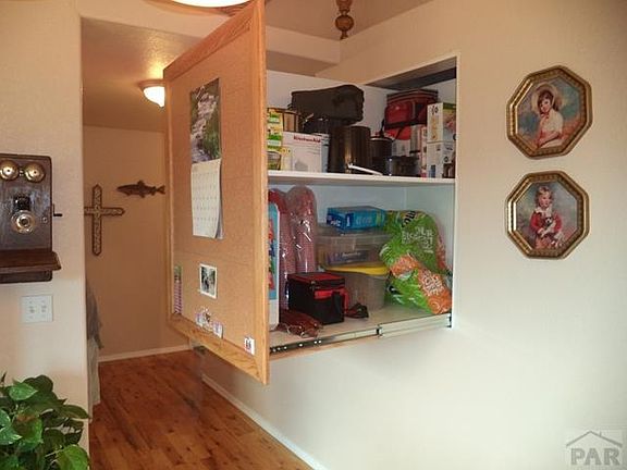 IMMACULATE 1 family home on 1.18 acres..Enter this gorgeous home through a stucco courtyard with beautiful front yard. Home has beautiful hardwood floors in kitchen & dining area. Pantry in kitchen has glass pantry door, tons of cabinets, including lots of counter space. There are so many closets thru out including a large unfinished room in basement for storage. Don't forget to look behind the large cork board hanging on the wall in dining area. Just pull on it.. AMAZING.. Hidden storage (500 lb rating). Wait till you see the hobby room/man cave connected to back of garage. Large family area in basement that is divided in middle with an inlaid chess set and cusom designed bathroom. Basement storage area is pre-plumbed for wet bar or 2nd kitchen. Laundry room on main level complete with mop sink. Fantastic views of mountains in back yard. 10x12 redwood deck and large patio. Beautiful yard with mature aspen, pinon pine, flowering pear, colorado blue spruce, apple, peach, grapevines and plum thicket trees...Oversized septic system...So many other amenities...A MUST SEE!!!!