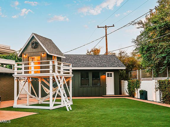 Completely renovated and full of charm, this 4-Bed, 3-Bath home sits on a .31 Acre corner lot on a quiet circle of Tuckey Ln. Inside, the open layout shines with walnut hardwood floors & sleek finishes. At the heart of the home sits a chef's kitchen with GE Café appliances & command-central island. Cozy up by the gas fireplace in the expanded living room with built-in storage & custom lighting. Outside is made for fun: a diving pool with safety fence, quirky kid-friendly play mound & an elevated playhouse dubbed ''The Birdhouse.'' A beautiful detached 540SF insulated workshop/garage with 10' ceilings, A/C, engine hoist & electric RV gate adds versatility for extra vehicle/boat or the ultimate handyman. With new Pella windows, OWNED solar panels, & low-maintenance landscaping, this gem is both stylish & practical. Locatedwithin minutes from Madison schools, Sprouts, the Arizona Canal, Luci's at the Orchard & all North Central and Biltmore hot spots.