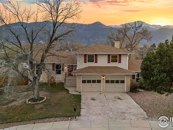 BACK ON THE MARKET!! Very rare opportunity to own this unique 4 bedroom 3 bath with incredible unobstructed views from Cheyenne Mountain to Garden of the Gods with majestic Pike's Peak front and center! Fully updated home with new carpet, stainless appliances, new bathroom fixtures, newer windows and paint. Bonus workroom in the 2 car garage and a walkout to the concrete patio from the family room, or to the deck from the kitchen. The home sits on a hill overlooking the valley to the west, and the location is perfect with one entrance for privacy and little traffic. Open kitchen floorplan with newer appliances, family room has a wood-burning stove. This could be your forever home so contact your local realtor or text the agent for info and showings!