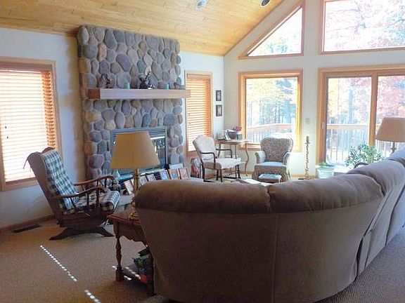 Enjoy true Northwood's living when you purchase this Chalet Style 4 BR/4BA home atLake Forest Landing Condominiums on the Eagle River Chain of Lakes. Features include the master suite with whirlpool, hickory cabinetry throughout, wood cathedral ceilings, recessed lighting, loft, 9' ceilings, 2 gas fireplaces w/blower units, two car attached garage, waterfront deck with boat slips, private channel access to Voyageur Lake.