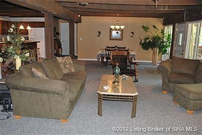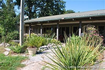 REDUCED! MAKE OFFER! VERY UNIQUE UNDERGROUND HOME. 3 sides of this home is nestled back into a hill. It does have a roof which normally underground homes do not. This has a nice green metal roof. Landscaped with a relaxing fish pond right off the covered front porch. Lg windows from ceiling to floor to let light flood in. Open floor plan boasts of massive wood beams on the wood ceiling. Very energy efficient. Foyer, Living room and dining room are all one big room, that flows right over to the new remodeled kitchen with island breakfast bar. Kitchen has ceramic tile floors, tile backsplash, stainless steel double sink and hardware. Appliances stay includes white gas stove, and fridge with ice maker. Perfect for individuals or for a family. Outside is a 3 car garage and storage for all your toys or hobbies. Call today for a motivated price!. Agent is related to Seller! Taxes are '09 pay '10 and reflect deductions that may not continue to apply, possibly resulting in a higher tax bill\n\nInformation Deemed Reliable But Not Guaranteed. Information provided by the Southern Indiana REALTORS® Association, Inc. © 2010 SIRA Multiple Listing Service. All rights reserved. Brokered And Advertised By: RE/MAX Results Listing Agent: Lesa Jones