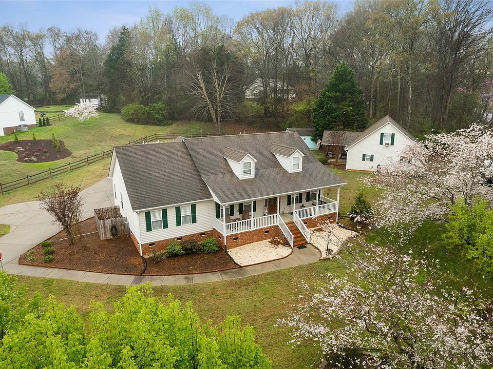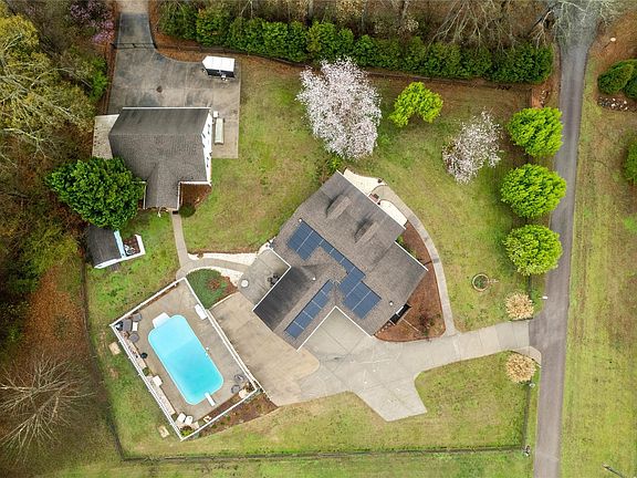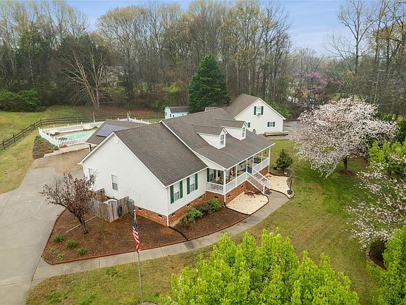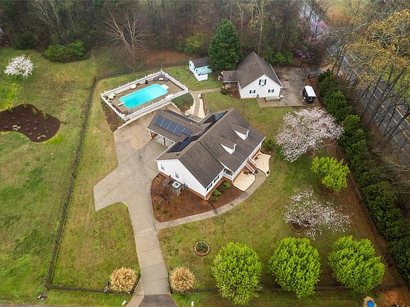 Rare Find in Rock Hill,Updated 3 bed and 2 full bath Ranch Home on a corner lot with over an acre fully fenced,Updates-Hardwood floors, granite in kitchen and baths,Plantation Blinds throughout, Huge dining area open to the great room .Travertine floors and shower in primary bath.Big great room with fireplace,View the pond from the rocking chair front porch .Pull in through electronic gates right into your two car carport.Vacation at home with 18x36 Salt Water Pool and big deck area . RV parking and power hookup . Detached garage w 2nd living quarters included 1 bed and 1 bath or office with big bonus room above , the garage has a workshop as well .Space for your home business with separate gated entrance , home has two driveways .Save on electricity with Solar Panels just 2years old .New HVAC in 2022.Heat on demand system 1 year old. Second carport for boat storage . Garage built in 2002 , shed for more storage .2nd living Q/Office,Bonus in garage, private entrance and gate .