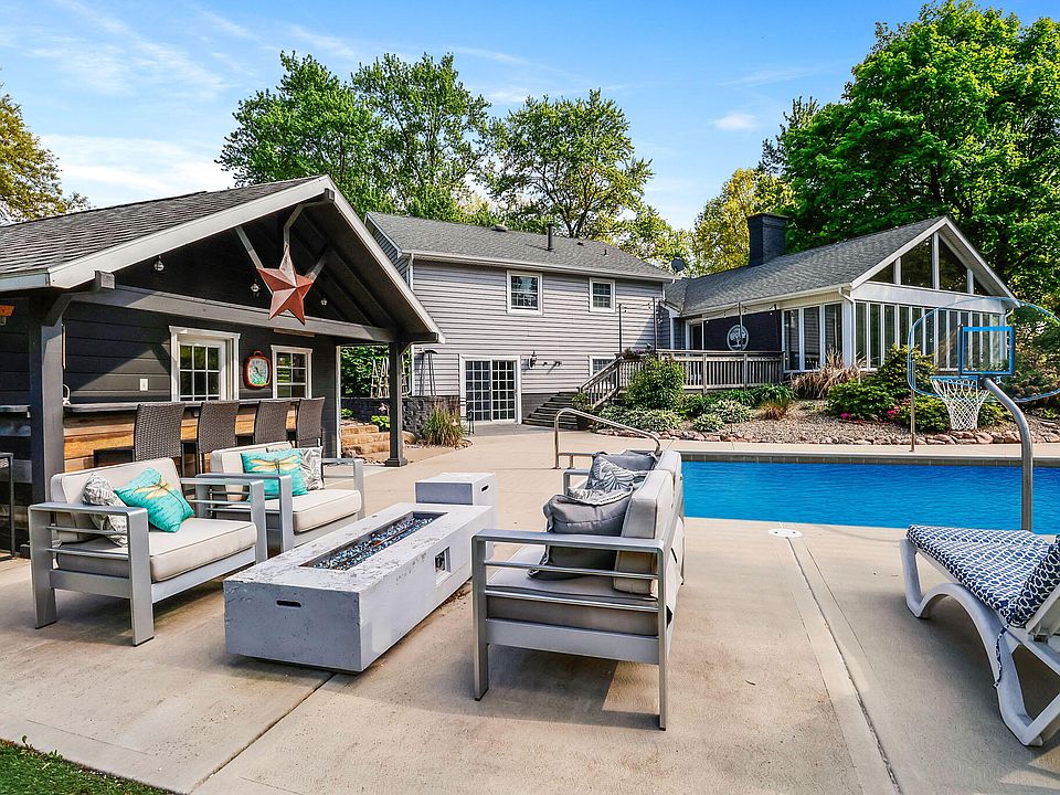 Now is your chance to own this beautiful backyard oasis in the heart of Valparaiso! This home is back on the market at no fault to the sellers! The beautiful landscape of this home will have you longing for those warm summer nights spent outdoors! This space is made for entertaining! From the athletic in-ground pool to the features that surround this space, it's a must see! So many details went into planning this beautiful oasis and ensuring not only an aesthetically pleasing space but functionality as well. The backyard space is plumbed for a spa, has gas hook up for a built in fire pit area, as well as ample electrical outlets for charging devices. The pool house features a changing room, bar area and is roughed in for a future bathroom. The entire backside of the pool house is currently being used for storage of pool equipment and outdoor needs. The inside of this property is absolutely charming. From the moment you enter you will be blown away by the attention to detail this property has to offer. From the sprawling layout and beautiful transom windows, the details are endless. The main floor boasts a newly renovated kitchen and eat in area, a walk-in pantry, an office separated by beautiful French doors and most notably, a large living space overlooking the beautiful in-ground pool with floor to ceiling windows! Just steps away you'll find the upstairs living quarters, boasting a master en-suite with two closets and two well appointed bedrooms with a main bath. The walk-out lower level has a rec room, laundry room, additional bedroom and full bath! This home has a perfect indoor/outdoor flow with multiple points of entry and spaces to entertain! Come see it for yourself! Sellers are motivated!!!