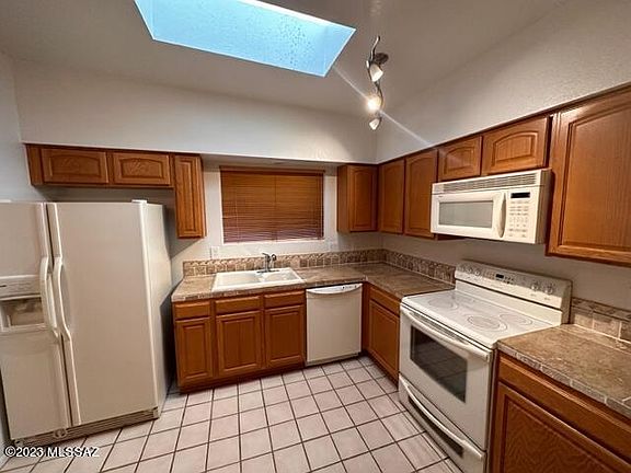 Beautiful mountain views! Lovely 2 bedroom 2 bath townhome. Immaculate with new interior paint and carpet. Spend your evenings enjoying the intimate back patio. Quail families passing through the scenic route. Low Maintenance desert landscape in both front and back yard. Skylights immediatly as you walk in foyer as well as kitchen and bath. Sliding glass doors in living room and primary both lead to enclosed arizona room out back. Red brick patio with mature trees out back. Large beautiful Lemons in spring. Schedule your showing today!