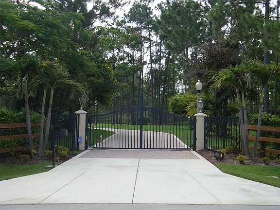 Single Family Home for sale by owner in Palm Beach Gardens, FL 33418. Country living at its finest on 5 acres fenced and cross fenced in Caloosa. Enjoy this turnkey 3 bedroom 3 bath metal roof home with both an attached 2 car garage and another detached 2 car garage. An empty acre with electric for horse ring. Outside garage can easily be converted to a barn with back tack room. This spacious split floor plan home has wonderful views including a paver driveway with automatic gate! This home has separate gates for both the home and the detached 2 car garage/workshop. Home also has a generator hookup for the house as well as accordion storm shutters on all openings as well as electric front door shutter and polycarbonate top window panels.. Back patio includes sunshades to increase your in shade area as well as help decrease the temperature in the house! House has surround sound speakers and intercom system. Recent kitchen remodel and outside patio kitchen w/sink and beer fridge. Caloosa is conveniently located