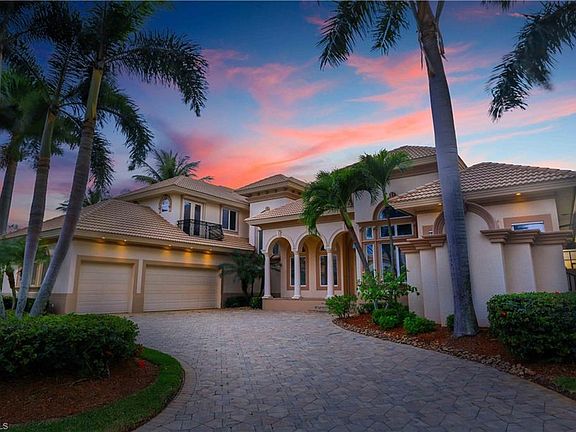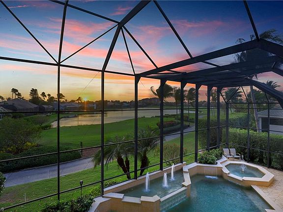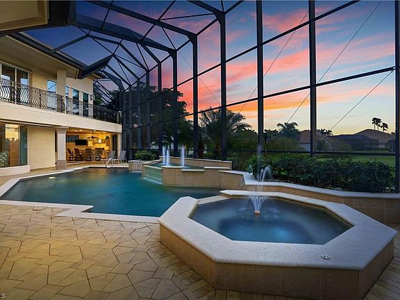 Highly Desired Western Exposure two story custom estate home located in one of SWFL's most prestigious communities- Edgewater @ Gulf Harbour- boasting panoramic golf course & lake views from pool area, living rooms, bonus rooms, balcony, lanai, kitchen & master bedroom. This home was built for entertaining & includes 3 living areas w/ fireplaces, 2 indoor bars, outdoor kitchen w/ additional bar & built in gas grill, pool & spa with beautiful fountains + a fire pit, & a music system throughout. Upstairs, guests will enjoy the bar, billiards room, bonus room & expansive balcony (from behind the 2nd Tee-Box.). Featuring Egyptian Limestone on the first floor & an impressive 4 car garage (if lifts were added, it could easily accommodate 7 cars). With 2 dens & a first floor master retreat, the owners will have plenty of their own space to relax & unwind. Other features include: Paverstone circle driveway, well appointed kitchen, upgraded lighting package, coffered ceilings, whole home hurricane protection, 250 gallon propane tank connected to 20kw generator (plumbed/wired for pool heater as well) 3 AC Units recently installed (w/ transferrable warranty) Tons of extra storage space too-