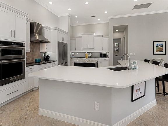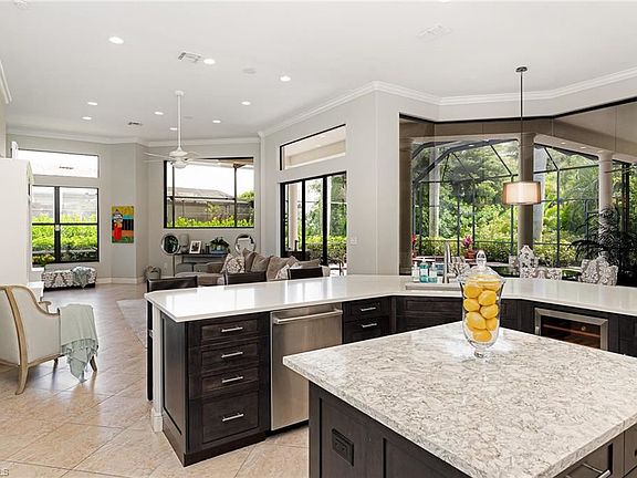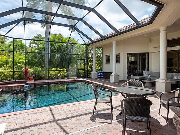 Absolutely Stunning recent Remodel, shows like a Model! Sports Membership Negotiable. Open Floor Plan features 4 Bedroom + Den and 3 Baths. High Ceilings with Custom Trays, Crown Molding and Large Eyebrow Windows in Den, Foyer and Dining Area. New Kitchen has Large Island with Counter Height Breakfast-Entertaining Bar + a Work Island, White Cabinetry, Glass Backsplash, Kitchenaid and Bosch Stainless Appliances, Wine Cooler and Pantry. Formal Dining, Eatin Area, Living Room, Family Room Overlooks the Lanai and Pool. Master Bedroom Suite, Lighted Tray Ceiling, His and Hers Walkin Closets, Master Bath walls are Travertine, Comfort Height Cabinetry, Soaking Tub with Marble Surround. Upgraded Guest Baths, Comfort Height Cabinetry, Ceramic Surrounds. Lanai features Paverstone Deck, Sunny Pool re-surfaced, Raised Hot Tub, Covered Area, Outdoor Kitchen, Jennair gas Grill, Refrigerator, Icemaker and Sink all surrounded by a Private Tropical Setting. Laundry Cabinets Sink and Counter, Living area Flooring is Diagonal Ceramic Tile, Plantation Shutters, Surround Sound in and out, Lanai Cage has been re-screened, Pool Shower. 3 Garage, Portable Generator, 2021 Roof, AC's 2020 and 2021.