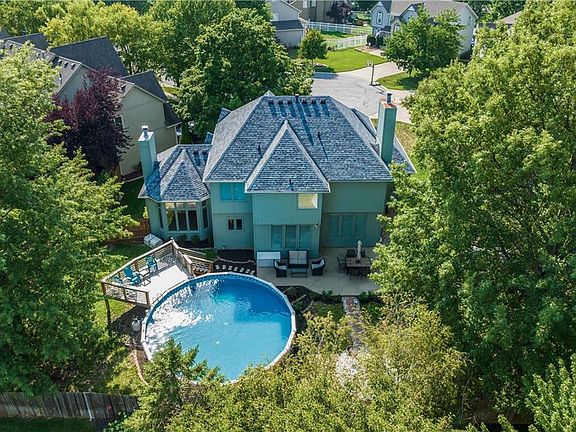 BEAUTIFUL 2 STORY WITH OLATHE ADDRESS AND BLUE VALLEY SCHOOLS ON A CUL-DE-SAC! Great House for Entertaining with Many Living Spaces and SWIMMING POOL!! Great Room has 12ft Tray Vault Ceiling, Fireplace and a Wall of Windows making it light and bright! Kitchen with Center IslaBnd, Tons of Cabinets, Granite Countertops, Pantry with Pull-Outs and Stainless Steel Appliances--ALL Staying! Breakfast Room, Hearth Room, Half Bath and Laundry complete the main. Head up to the HUGE Master Suite with Double Vanity, Whirlpool Tub, Separate Walk-In Shower and Large Walk-In Closet! Bedroom 2 has it's own Private Bath! Bedrooms 3 & 4 have a bathroom in between with Double Vanity! Need more space? Finished basement has Rec Room with Wet Bar, Sitting or Game Area and 4th Full Bath and still plenty of storage space! 3 Car Garage! 3 YEAR OLD ROOF! Great location--close to shopping, dining and quick highway access!