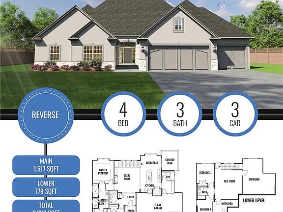 This home is under construction with estimated completion of late 1Q2025. Great open plan. The Main living area includes a fireplace (not in the corner as shown in previous model photos), cabinets and a trim feature wall above the mantle. The kitchen boasts quartz countertops, gas cooktop, wall oven and vent hood upgrade. Wood floors at entry, great room, kitchen and laundry. Primary bedroom includes a feature ceiling and a primary bath with quartz countertops and a larger zero entry shower! The lower level has a large rec room, bedrooms 3 and 4 and the third bathroom. Check out this quality home in the beautiful golf course community of Falcon Lakes!! Convenient highway access and the community is just 10 minutes to the Legends Entertainment and Shopping District and 30 minutes to the airport. Acclaimed Basehor-Linwood Schools!