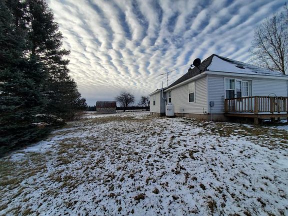 This three bedroom, one bath ranch home (farmhouse style) is located on a paved road just miles from M-65 for easy travel throughout the area. The home features a partial basement with two rooms, a two year old forced air furnace that runs on fuel oil, a septic system that was installed in 2016 and a 14 X 20 field stone constructed storage shed at the back of the property with electricity and upper and lower-level storage. Located on just under an acre with a fence surrounding the property this is a great starter home for a new couple. The square footage of the home is approximate and should be verified by the buyer.