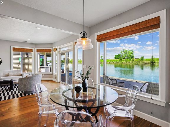 Welcome to the crown jewel of river living—Channel Island Marina—the most sought-after floating home community on the river. This premier slip-owned marina offers full ownership of both sides of your dock, along with a private two-car garage with loft for storage, hobbies, or flexible space. Securely gated, professionally maintained, and beautifully kept year-round, Channel Island sets the standard for luxury floating home living.This 3-bedroom, 3-bathroom floating home is an Even Construction original—built by the Northwest’s most respected floating home builder and has been immaculately updated with modern finishes and features. The open-concept kitchen and living room take full advantage of the riverfront setting, with sweeping views and natural light throughout including expansive views that stretch across Sauvie Island and the iconic Sauvie Island Bridge. The primary suite is a true retreat, complete with a spacious riverside upper deck, perfect for quiet mornings or sunset evenings. A second upper deck off the guest bedroom overlooks the dockside, offering a private perch to enjoy the marina activity.Inside, you'll find brand new flooring, contemporary updates, central heating and air, and a propane stove and fireplace—all designed to enhance comfort and livability. Every detail has been thoughtfully considered to offer the best of river life. The float was recently rated a “4” and is fully financeable through all three major floating home lenders, making this an easy purchase for qualified buyers.With slip ownership at Channel Island now valued between $350K–$400K, this home is priced exceptionally for what you’re getting, a beautifully updated, move-in ready residence in the most sought-after marina on the river.This is the floating home lifestyle done right, don’t miss your chance to own at Channel Island.