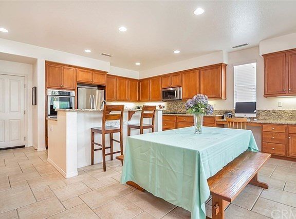 Welcome home to this very special single-story house located on a very large 10,454 square foot lot at the end of a cul de sac. The street is mainly single loaded & on the west side of the property there aren't & won't be homes, offering a nice quiet & private location. Solar panels are installed & are completely paid off, allowing the homeowner to benefit greatly from a very low monthly electric bill (currently varies between $1-9/month) & even receive money back yearly from So Cal Edison! The home is within walking distance to top-rated Reagan Elementary School & Half Moon Park, which offers picnic gazebos, baseball/softball fields & a playground area. All 3 assigned public schools have impressive 8 of 10 ratings on Great Schools & are within 3 miles from the home. The open floorplan of this single story home can be experienced as soon as you walk through the grand foyer into the spacious living areas w/ lots of natural light. This home offers a huge family/bonus room where a formal dining area can be, as well as a large kitchen/casual eating area & living room combo, plus 4 bedrooms and 3 bathrooms. The beautiful kitchen boasts granite countertops, stainless steel appliances & lots of cabinets for storage. The large covered patio makes for a great private outdoor area plus plenty of room for a pool or large play area. Inside laundry room & 3-car garage w/ storage organizers. Low fixed tax rate of 1.6% w/ Mello Roos included, which will eventually drop down to approx 1.1%.