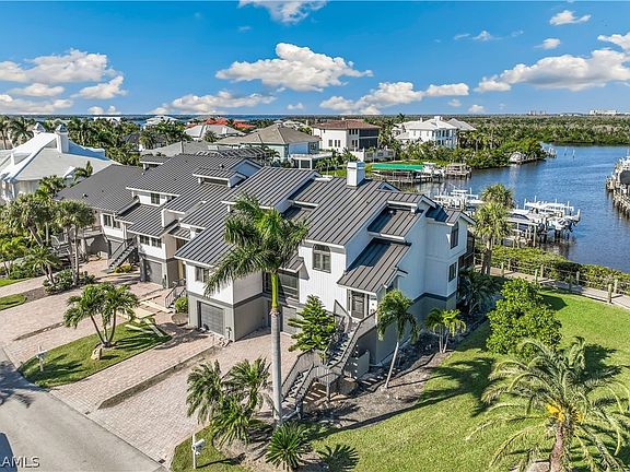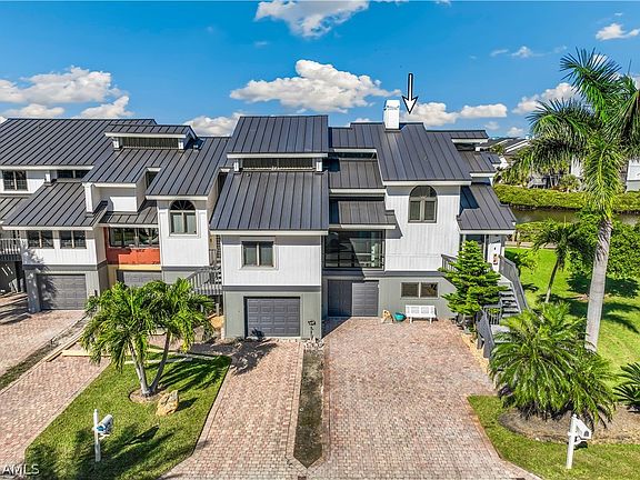 Discover the ultimate waterfront retreat on prestigious Connie Mack Island! This rare corner townhome offers an open floor plan that boasts 2 bedrooms, a den, 2.5 bathrooms, and large tile flooring throughout the first level. Unwind on your expansive two-tiered Trex lanai, complete with a new picture frame screen, and take in the breathtaking views of the marina and surrounding wildlife, including playful manatees. This stunning property features a newer roof, glass elevator, freshly painted exterior, new AC, and water heater. A boat slip rental opportunity is also available in the marina, providing a convenient and secure spot to dock your vessel. The spacious primary bedroom en-suite and guest bedroom are located on the second level, while the kitchen flows seamlessly into the large den area. The lower level offers additional non conforming air conditioned living space, storage, and a bathroom. Enjoy the added convenience of a one-car attached garage with a new epoxy finish. Boaters appreciate the convenient location, which offers swift access to open waters and proximity to popular destinations like Fort Myers Beach, Sanibel, Captiva, Cape Coral and many more, making it an ideal base for exploring the region's beautiful waterways and attractions, award-winning beaches, and top-rated dining. Community amenities include a heated pool, renovated clubhouse, pickleball, and tennis courts, as well as a community apartment for guests. Be sure to click on the virtual tour. Experience the ultimate Florida lifestyle on a private island - don't miss out on this incredible opportunity!
