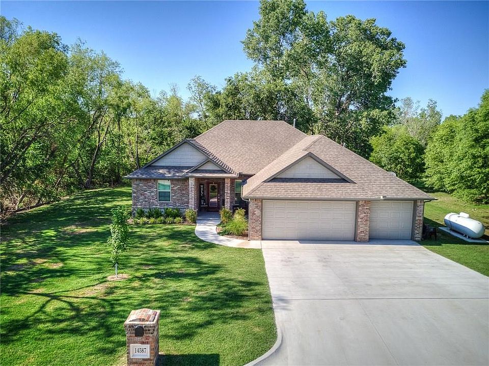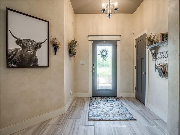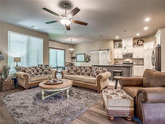 Beautiful home on just under one acre of wooded paradise. Watch the deer and wildlife from your back patio while still living in an established neighborhood. This large open floorplan features 4 bedrooms (or 3 +office), 2 full bathrooms and a powder bath. Custom soft-close cabinets in kitchen, pull out drawers, large pantry with sliding barn door, stainless steel appliances, gas stove top, under mount sink, shiplap accent wall, and a large island. Walk-in master shower, gorgeous freestanding tub, and a master closet that is a must see. 3 car garage with a storm shelter, and custom shelving for additional storage. This home has so much to offer!!