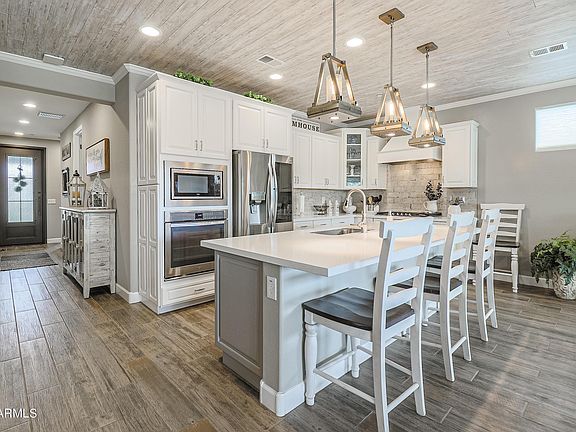 Spectacular! The photos tell the story of the pride and talent shown in improving upon a great floor plan. The home has $60k in builder upgrades and another $60k in additional improvements (list attached). This home has all the advantages of a new coupled with numerous upgrades. This is as far from builder standards as a house can get. Some of the upgrades include the Shasta pool/spa combo, custom front door by Ironworks, a custom built-in bar, custom master closet, sliding barn door into master bathroom, high-end garage cabinets, wood ceiling, crown moulding, electric patio shades. professional landscaping, custom TV/electrical wiring, an electric Vehicle (EV) charger and water softener. HOA includes roof, exterior paint and front yard maintenance.