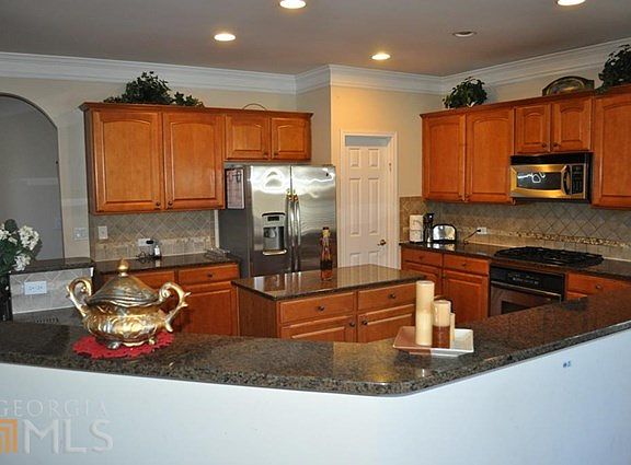 Beautiful 3 sided brick home in a sought after community and school district. Mins from I-85. Two story family room, bedroom and full bath on main floor, Nice size bedrooms. Very large kitchen with lots of cabinets, Separate Living room and breakfast area. Nice Size Dining Room. Private Wooded backyard.