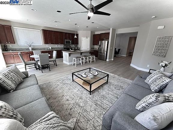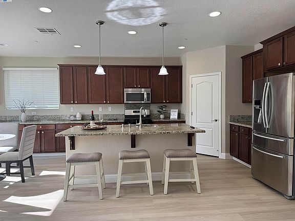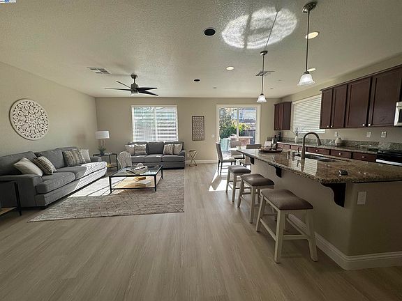 Wow! This Very nice home is in move in ready with new laminate flooring, interior paint, 5 1/4" baseboards, new carpet, some doors, appliances, in a very nice neighborhood. Office can be converted to bedroom by adding closet. Backyard awning, custom BBQ with fridge, Pavered patio, and outdoor firepit Clubhouse and pool close by.