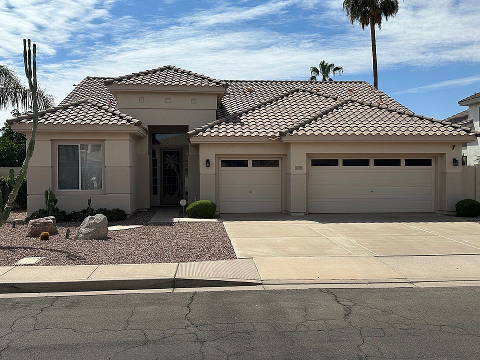 No application fee, no admin fee, upfront or monthly. Bright & clean, beautifully upgraded home w/ fresh paint & 18'' tile throughout except bedrooms. Built-in entertainment niche & gas fireplace in great room. 10' ceilings for open feel w/ skylight in dining room. Beautiful kitchen w/ corian counters, pullout cabs, & new appliances. Lg MBR walkin closet & separate shower/tub. Lovely private back yard w/ covered patio & builtin BBQ. Nice curb appeal on a N/S exposure, corner, quiet interior lot. Low maint landscape, sunscreens, ceiling fans T/O, soft water sys & more. Parks & lighted bike path nearby. All utilites to be paid by tenant