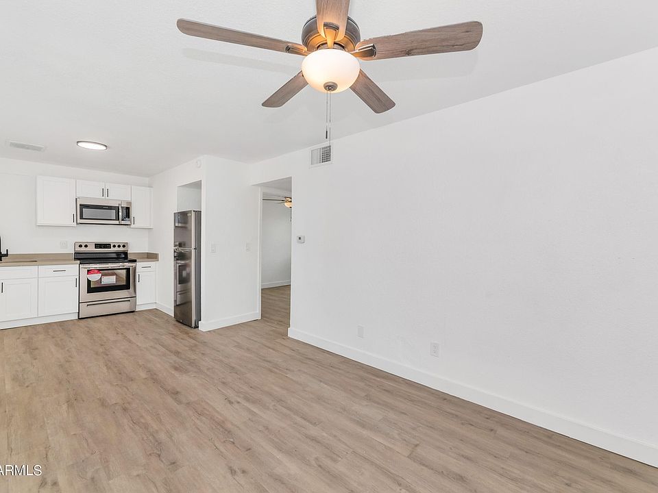 All new range, microwave and fridge. Freshly painter and ready to be called home, with ceiling fans in every room. Hugh parking lot for lots of parking. Motion sensors lights added so that you never have to go out into the dark. Just minutes from downtown Phoenix It's all electric tenant paid, and tenant pays just 25 per month for sewer, water and trash, owner pays the rest
