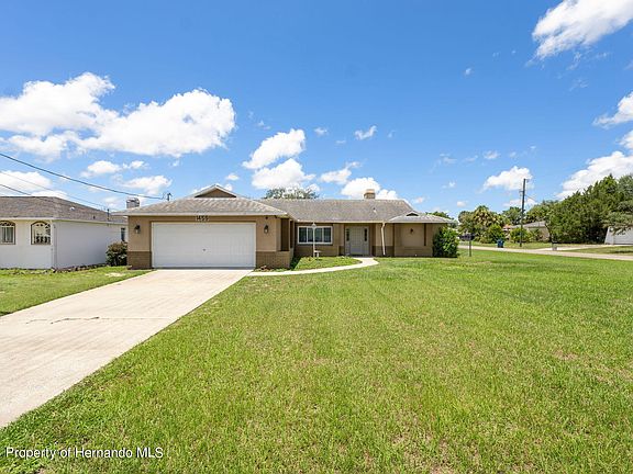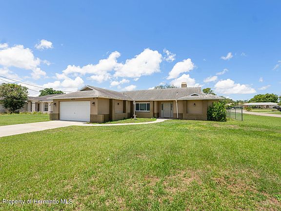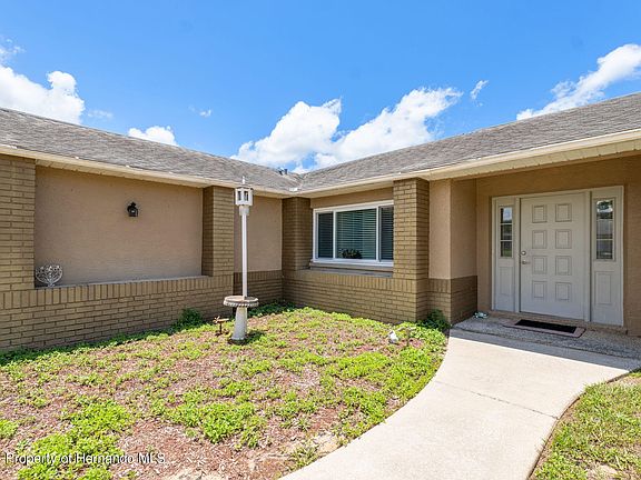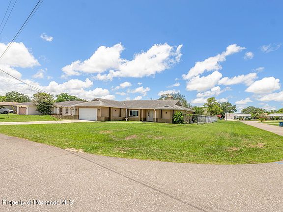 Active Under Contract - Accepting Back Up Offers. If you've been imagining summer barbecues and poolside fun as part of your next move, you don't have to look any further than this Spring Hill gem! Classic brickwork and outdoor lighting boost the curb appeal, as does the oversized corner lot. Beautifully renovated, the open concept split-bedroom floor plan features spacious living and dining rooms with vaulted ceilings for a light, airy feel. Gorgeous dark laminate flooring in the living areas and bedrooms is stylish and easy to maintain. Gather everyone around the fireplace on cooler evenings and get cozy, or host your nearest and dearest for game night. Line up the munchies and drinks on the breakfast bar for easy access during your watch parties or family get-togethers. You'll have plenty of space to prep snacks or meals in the bright and roomy kitchen. Cooks will adore the large pantry, granite counters, soft-close shaker cabinets, and stainless steel appliances. Nibble your morning bagel or sip coffee in the eating nook, which has a lovely view of the pool outside. After a long day, you can retreat to the expansive primary suite, which offers a huge walk-in closet for your belongings. Luxuriate in the attached primary bath with its large soaking tub, a standalone shower, and dual sink vanities. The remaining guest bedrooms are sizable; they share a full bathroom with a step-in shower. Both bathrooms have newer vanities, sinks, toilets, and custom tilework in the showers/tub. A convenient indoor utility room provides not only a laundry sink and additional storage, but also transitional entry between the garage and main house. Grab your towels and sunscreen, and make your way through the sliding glass doors for outdoor adventures! Lounge in the shade of the lanai with brick pavers. The ceiling fan stirs the breeze until you're ready to catch some rays or hit the pool. A former outdoor shower room has been transformed into pool storage to keep the floatie and noodle clutter to a minimum. Little ones and pets can play safely in the fenced backyard. There are no HOA fees or restrictions in this neighborhood, either! Centrally located in Spring Hill, you'll have easy access to both US-19 and the Suncoast Parkway so you can travel to Homosassa, Clearwater, St. Petersburg, and Tampa. There are shopping and dining options abound; plus, you're close to schools and medical centers. You're less than 30 minutes away from Gulf beaches like Pine Island or Sunwest Park. Explore Florida's natural beauty at nearby Weeki Wachee Springs State Park, where you can paddle the river or meet real mermaids. Private showings are available. Embrace Florida living at its finest, and make this move-in ready home yours!