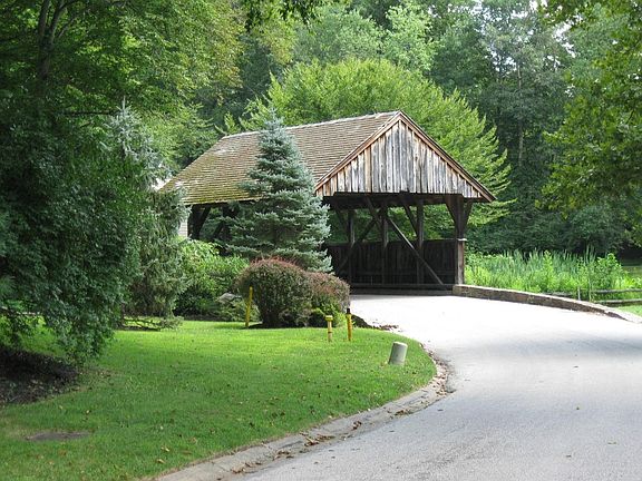 Serene views are desirable features of this Spacious and Updated Rancher in Waterview Farms. Located on a cul-de-sac adjacent to a covered bridge adding an historic charm to the neighborhood! Natural sunlight is abundant in this home with bay windows in the dining room and kitchen, though its wooded lot provides privacy. The foyer separates the living room and dining room, but directs you to the "open concept" kitchen and family room. The kitchen has beautiful cherry cabinets - the appliances have been updated. The family room features a brick fireplace offering the convenience of gas logs and sliders provide access to the beautiful heated pool and deck areas - inviting one to relax and enjoy the outdoors. The Main bedroom and Main bath are away from the gathering center of the home. Three additional bedrooms - each with double closets - and a tiled hall bath with double vanity sinks are also located on the main level. The two car garage has an insulated door and provides access to attic storage - the length of the house! If you are looking for a super space for entertaining - look no further! In addition to the Recreation Area, the lower level has features you will appreciate including lots of storage closets, a bedroom, a bath, an office, a huge laundry room, and a utility room. The side door offers convenient access to the pool/deck areas. Two sheds allow for storage of landscape, pool, and deck items. The beautiful landscaping is accented with lighting in the evenings. Some updated features: 2016 - 40 gal Water Heater, 2014 - pool updates, SGD, and roof, 2007 - HVAC, 2001 - siding and gutters. Upon viewing this property, I am sure you will agree that it has been very well maintained! The square footage noted includes the finished lower level but has not been verified.*fountain near pool entrance to be excluded.
