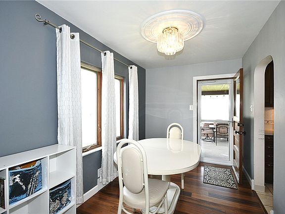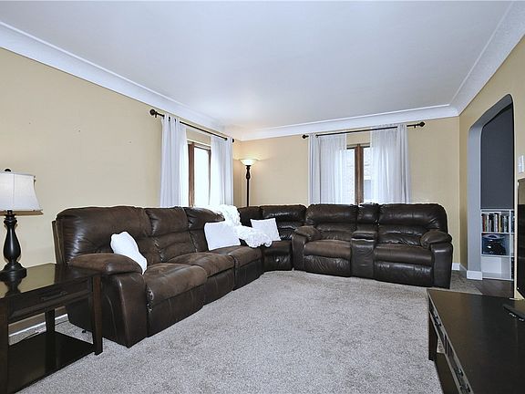 Conveniently located to shopping & transportation, this lovely brick cape cod with the most beautiful backyard setting is sure to impress! The main level is outfitted with two large bedrooms & a stylish bathroom, newer carpet throughout, hardwood in dining room, stainless equipped kitchen with tiled backsplash & gleaming cherry cabinetry with loads of storage! The 2nd level, currently arranged as a private master suite, could also be a perfect office or den (or both!). The multiple closets & built-in shelving make this area great for displaying collections or books. There is also an updated partial bath with tile floors to finish the space. The lower level includes a large gameroom, separate laundry room, partial bath & a 2 car tandem garage. A level driveway fits multiple cars & is flanked by new retaining walls. Now is the perfect time of year to enjoy the 15'x16' covered patio overlooking a picturesque landscape - perfect for just about any outdoor activity!