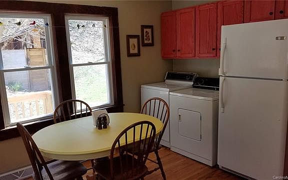 Recently updated bungalow that is perfect for single family residence; second home or vacation rental. Large flat yard with storage shed. Sit on the covered front porch and listen to the Little East Fork River that runs across the street from the property. Living room with gas fireplace; spacious country kitchen with washer/dryer hookups; two bedrooms and one bath all conveniently located on one level. Newer deck off of kitchen for outdoor enjoyment. Hardwood floors, electric updates, ceiling fans, updated double pane vinyl windows. Very well taken care of home. Move-in ready. Private country living at it's best. Close to Lake Logan and Blue Ridge Parkway.