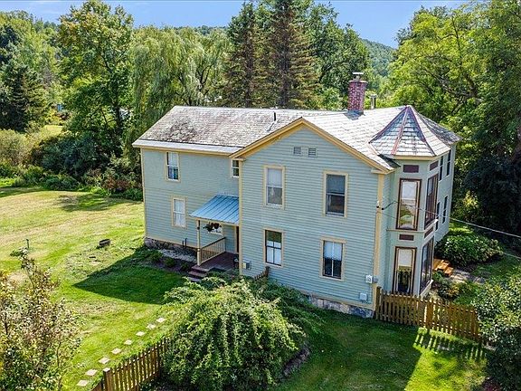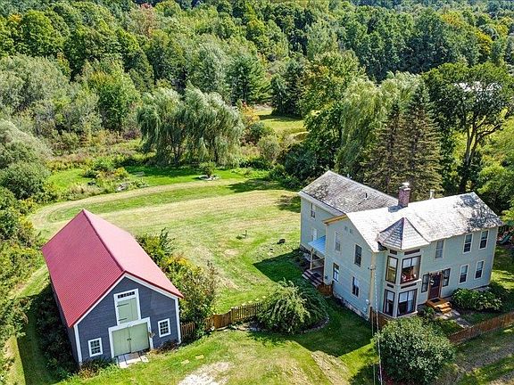 This historic home was built in 1830 and has so much character and an abundance of space! Located within a 30 minute drive to both Middlebury and Burlington, the property consists of almost 3 acres, a rustic barn for storage and a beautifully cared for 4 bedroom, 2 bathroom home in the heart of Monkton. The current owners have made updates with preservation in mind, using antique reproduction wall paper, restoring some of the windows, and choosing light fixtures and decorative elements that enhance this home's historic charm. With special details like curved walls, wide plank pine floors, ornate paneled doors, long hallways, built-ins, and two staircases, the home is truly a delight to view. Other desirable aspects include a full walk-in butler's pantry, a wood stove in the formal dining room, multiple soaking clawfoot bathtubs, and ample sized bedrooms with one including a built-in Murphy bed. An expansive covered porch off the dining room offers private space to enjoy the outdoors and access to the side lawn. There is an established vegetable garden area in the rear lawn and a lovely view of the meadow and tree line. Whether you have an existing passion for historic homes, or just love the unique character that this home provides, this property is an affordable option in a great location and is available for immediate viewings.