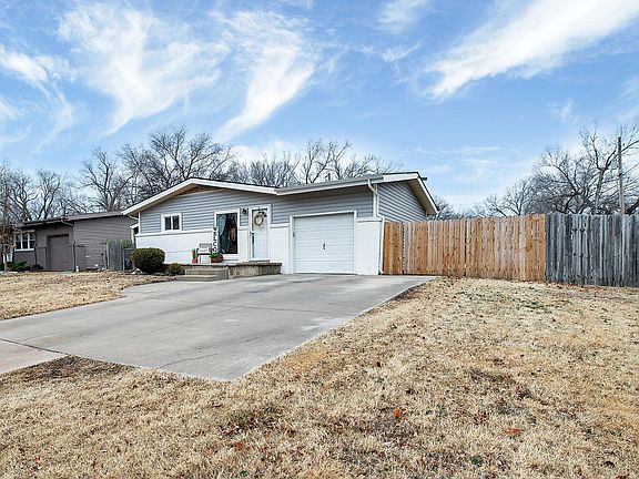 Have you been looking for a move-in ready home, within easy distance to lots of amenities and within the Derby School District? Come on down to Kokomo! There are so many great things packed into this home. Recent updates include an updated exterior vinyl & gutters (2022), new water pipes throughout (2023), and water heater (2023). Pulling up to the property, you'll see the attached one car garage and front flower beds with a great front porch that can accommodate a sitting area. The front entrance leads directly into the living area with a nice open window to the front. Off the living area is the kitchen and dining combo that leads to easy access for a grill and backyard access. Down the hallway, you’ll find all three bedrooms and a full bathroom. The yard is fully fenced, with a patio area and raised garden beds, along with a fire pit. A great spot for entertaining!
